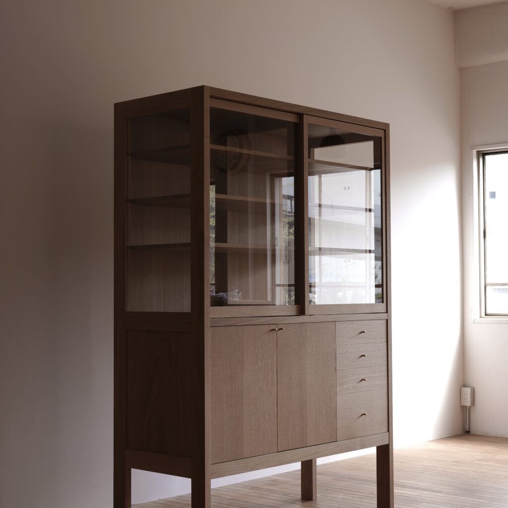上部3方がガラスの食器棚