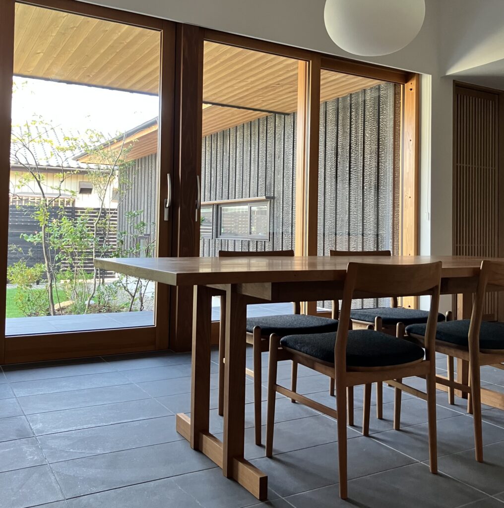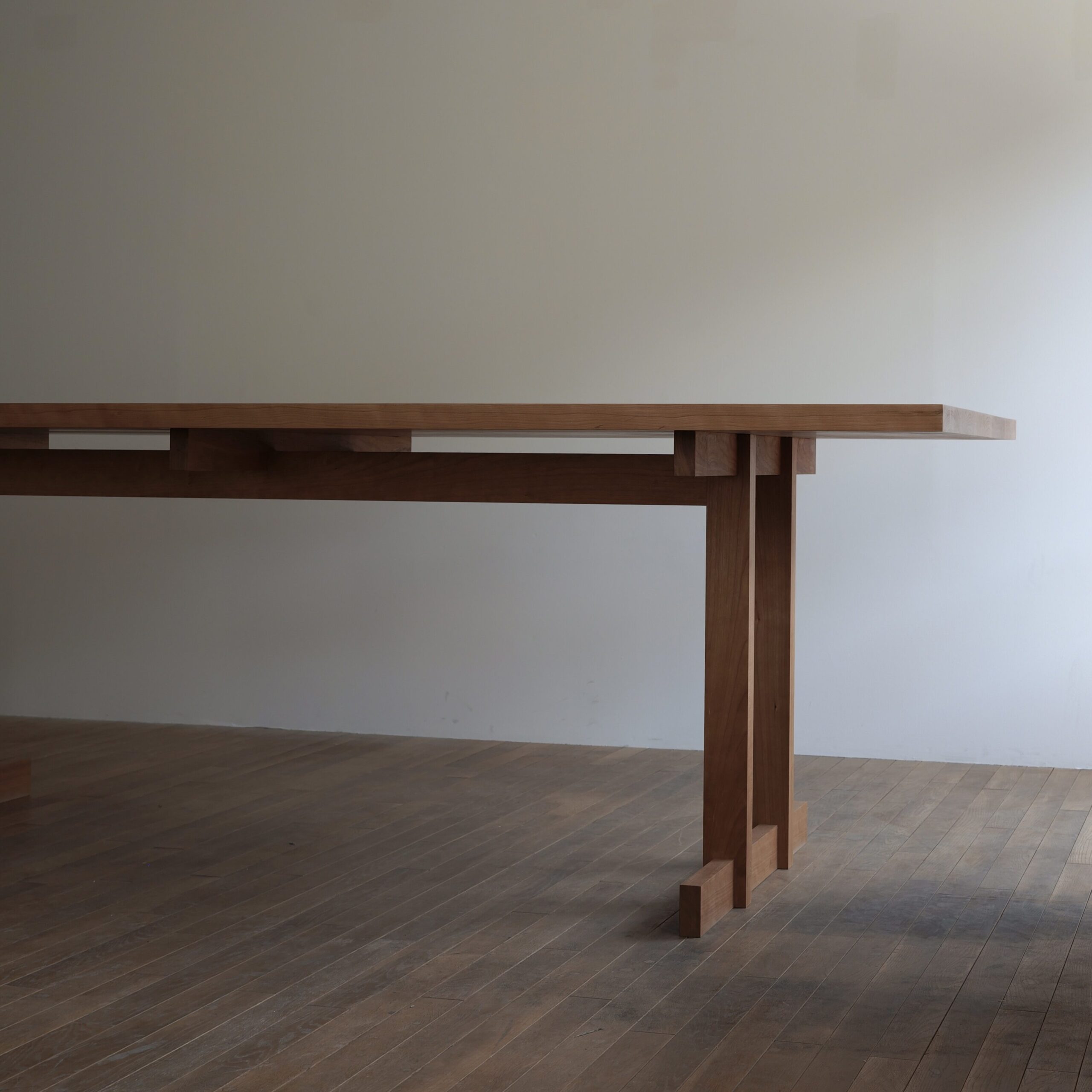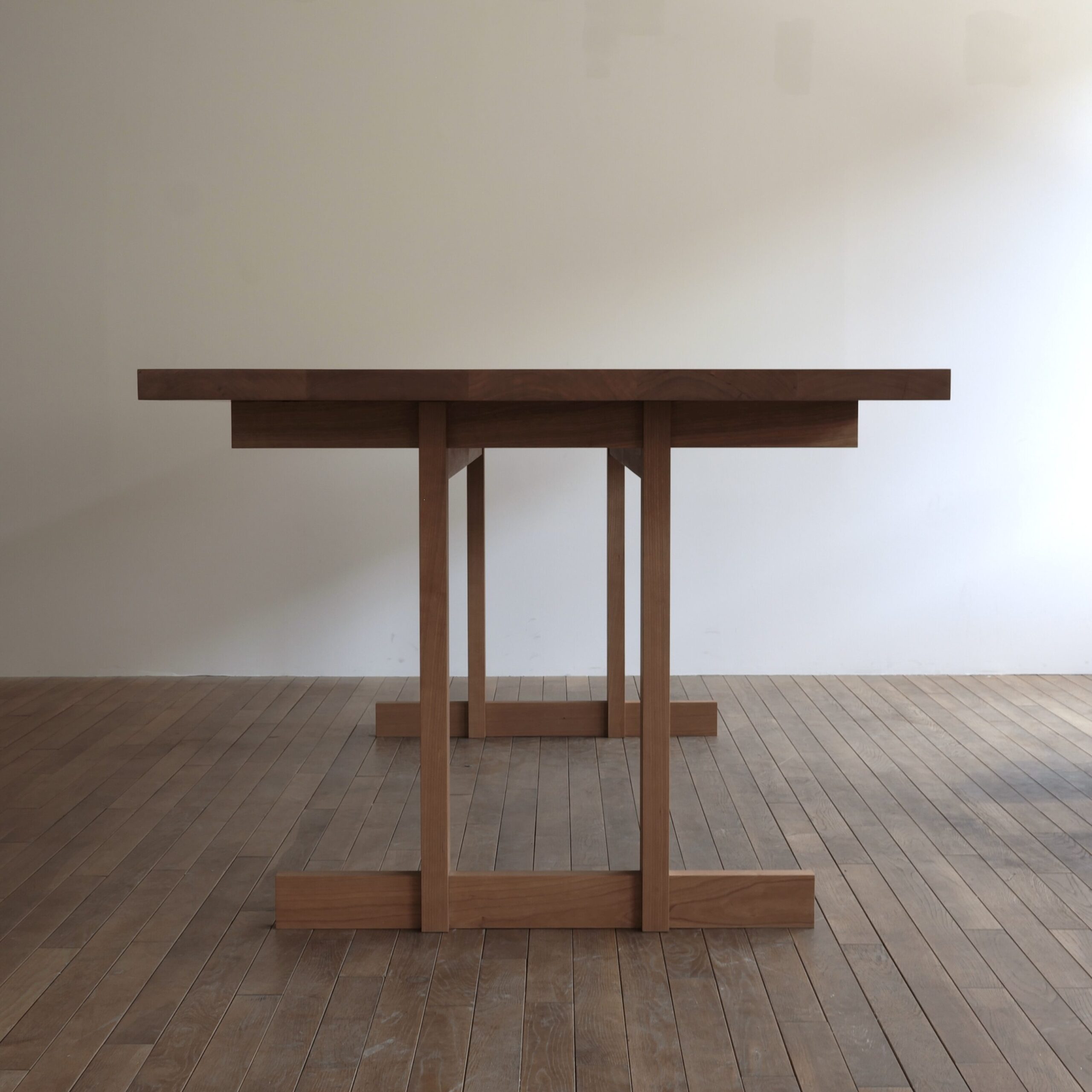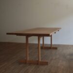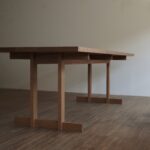 072 直線だけで構成された大型の2本脚テーブル。 とても潔い形となった。 dining table size : w2200×d900×h720 material : black cherry finish : oil