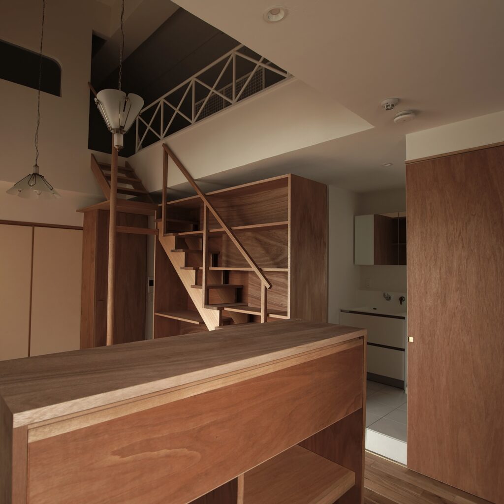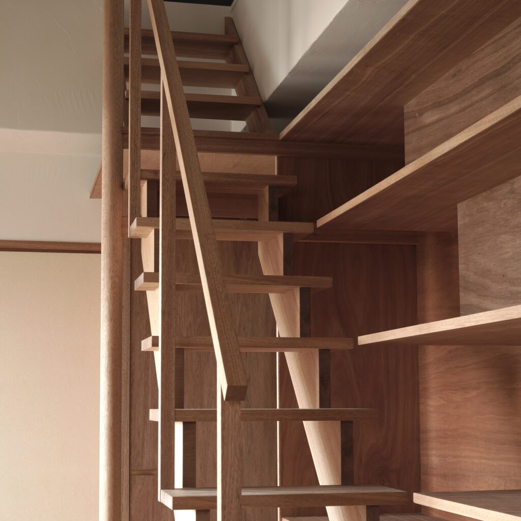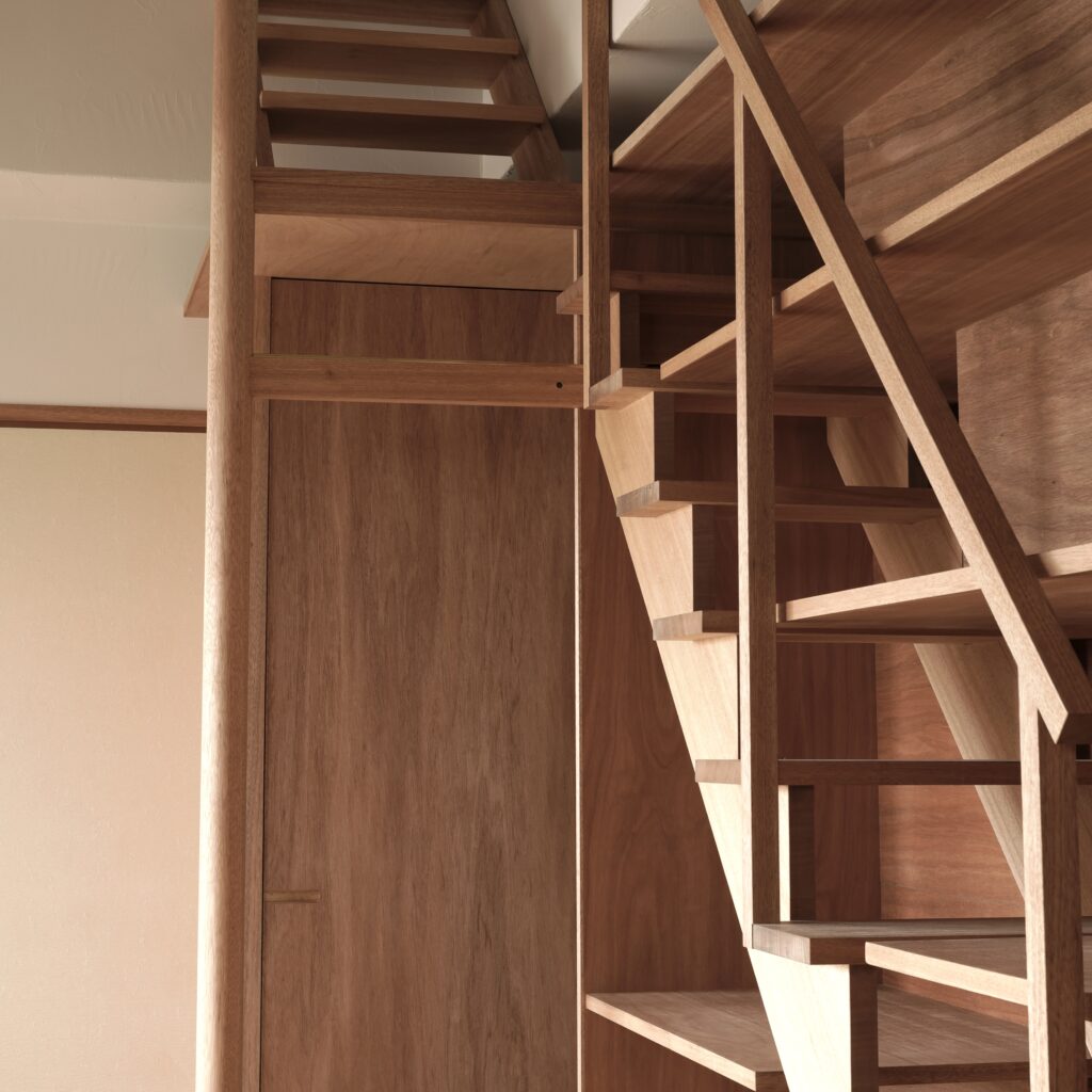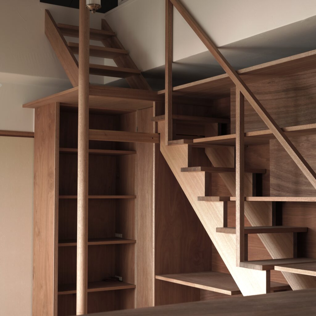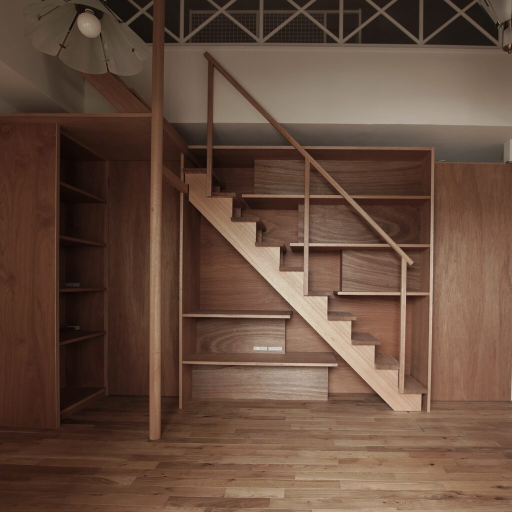 造作収納棚・柱・スライド収納型の階段・建具を製作