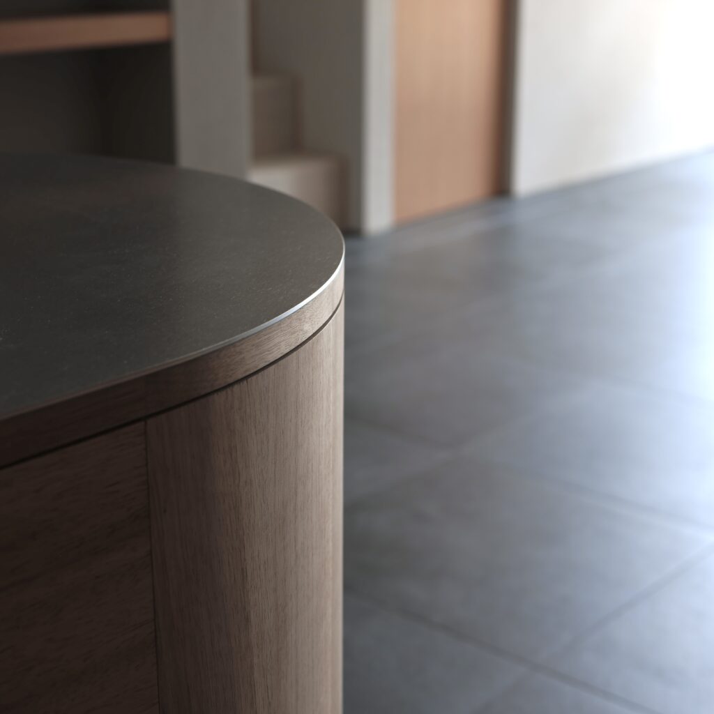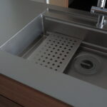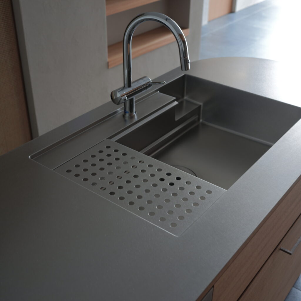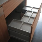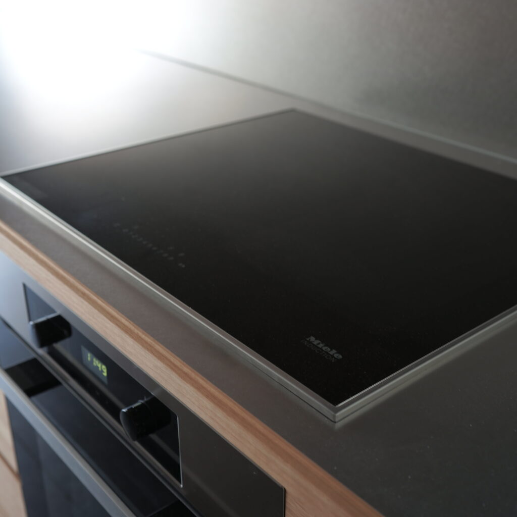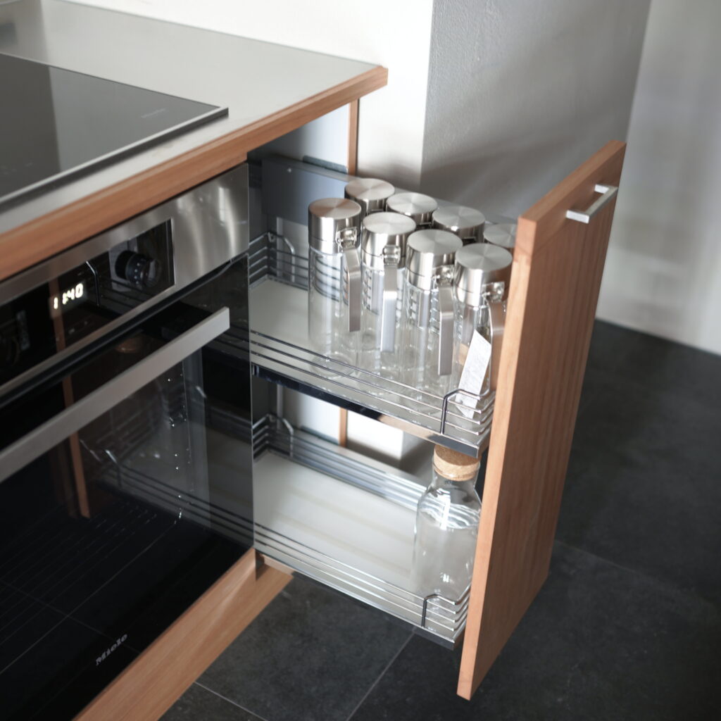 kt07 work top : sus phl / nyatoh cabinet : nyatoh, oil finish cooktop:miele oven:miele dishwasher:bosch